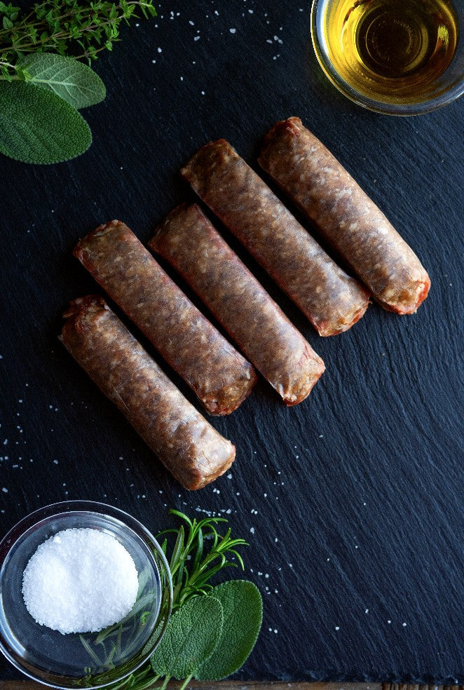 Delicious Akaushi Wagyu Beef Sage Breakfast Links. (8) 2 oz links sold in 1 lb. packs.